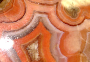 Hills Agate About 10 years ago, a large forest fire swept through the western Black Hills of South Dakota just to the west of Jewel Cave. The fire destroyed much of the organic matter on the soil surface and exposed nodules of agate exposed at the surface in areas that were previously unknown to agate collectors. The exposures are small and very limited quantities of Hills Agates have been found. The Fairburn Agates found beyond the Black Hills in badlands and grassland areas almost certainly formed in the Black Hills. The wide variety of patterns and colors present in the Fairburn Agates reflect the many original agate sources that were present in the Black Hills. Roger Clark, in his book Fairburn Agate--Gem of South Dakota, offers a persuasive argument for the correlation between the Hills and Fairburn Agates. That book is must-read for anyone that is interested in agates. The quality of the Hills Agate is variable, as weathering and frost action have often created fractures within the agate pattern. Many of the fractures appear to have been sealed by subsequent filling. Working with and around these issues is a challenge to the lapidary. The Agate Works is one of the few sources cutting cabochons from the Hills Agate. Each stone is unique and the patterns and colors vary widely due to the variability of each outcrop.