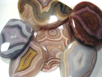 Laguna Agate Laguna agate, mined near Ojo Laguna in Chihuahua, Mexico, is a classic old-time material known for its wide variety of beautiful bright colors. Bright reds, oranges and yellows are not unusual in this material. The mining area consists of several claims in a very mountainous, rugged area where the Laguna nodules are mined out of a hard, volcanic rock. Their quality texture comes to a high polish, making the Laguna agate a great material for cabochons.